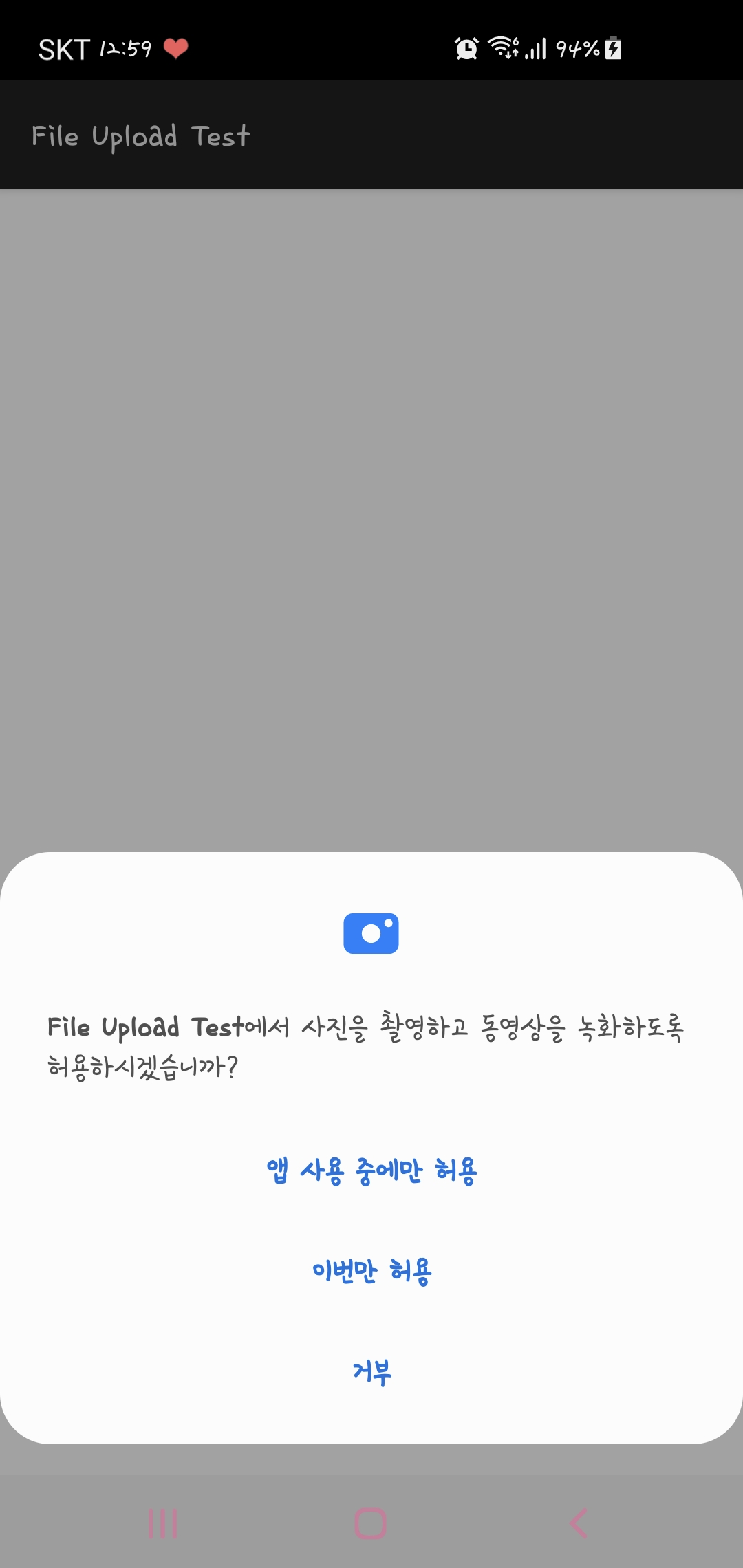 카메라 권한 확인 팝업 / 파일 선택 팝업